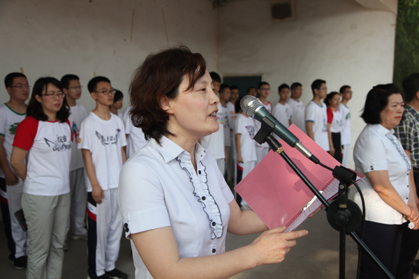 其次,由各毕业班学生代表自己所在班级向校长报告,并向学校庄严承诺:在最后的时间里,继续拳头紧握,厉兵秣马,定不负学校重托。