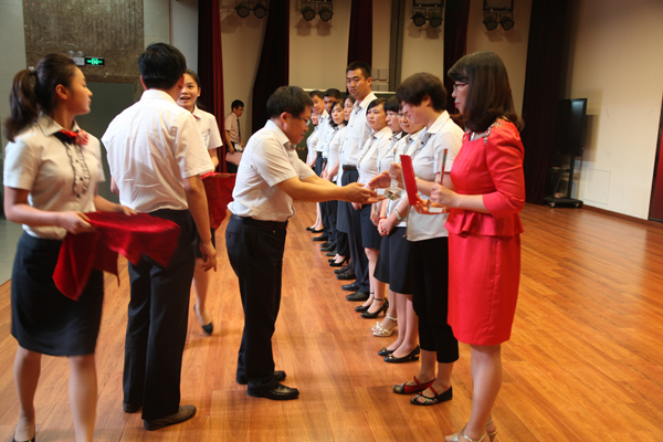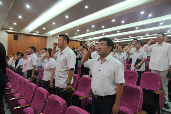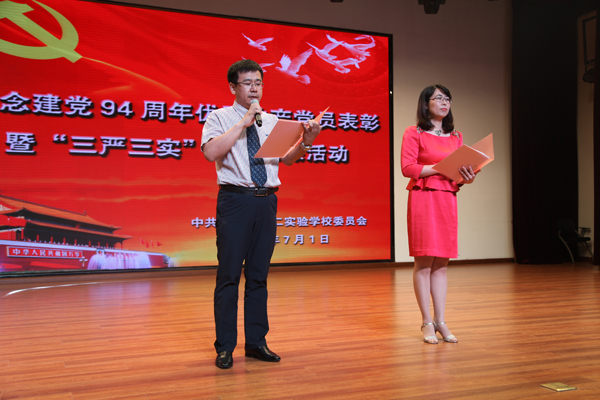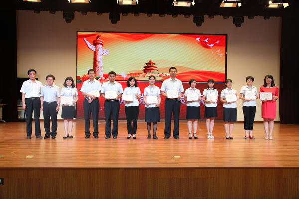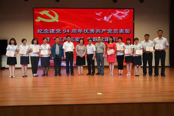 缤纷盛夏,骄阳照我,时值“七·一”,党徽光耀,为进一步树立学校党员党性观念,弘扬学校“追求卓越,勇于担当,示范引领,共同成长”的党组织文化,增强党员队伍的凝聚力、战斗力、执行力与影响力,在繁忙的工作之余学校党委领导集体精心组织筹备了庆“七·一”各项活动。2015年7月1日下午,学校如期隆重举行了“纪念中国共产党诞辰94周年优秀共产党员表彰暨扎实推进“三严三实”专题教育活动全体党员大会。
