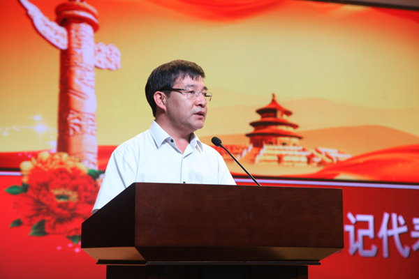 总支书记代表——南湖中学党总支书记张连峰同志向大会作“‘1’是无穷大的”主题发言讲话