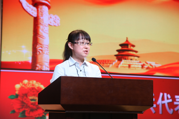 高新行政总支宣传委员——科研处刘艳滨副主任向大会作《习近平用典》学习心得代表发言