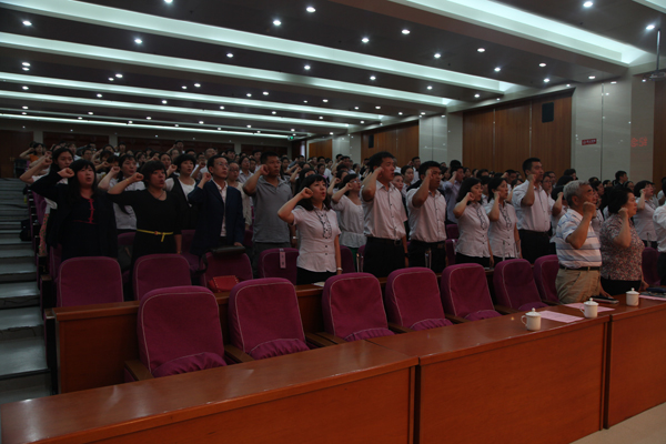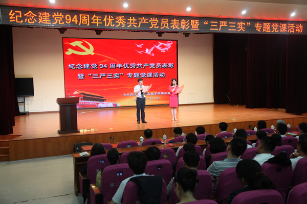 学校成功举行纪念建党94周年暨扎实推进“三严三实”专题教育活动全体党员大会