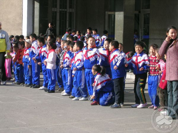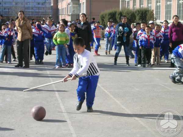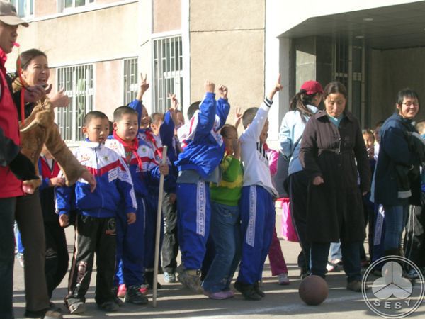 小学"冬季运动会"学生比赛现场