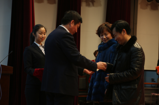 榜首对联的书写教师上台领奖(书卡)并合影
