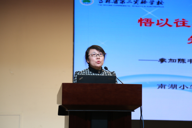 贾丽颖老师以《潜心思考 践行诺言》为题分享交流