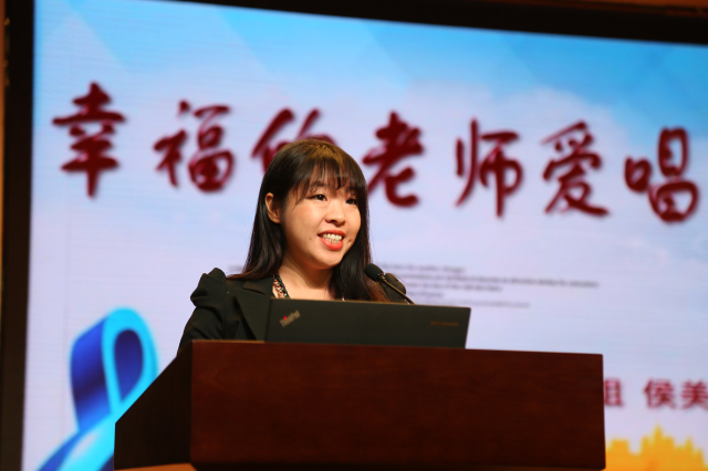 侯美娜老师以《幸福的老师爱唱歌》为题分享交流