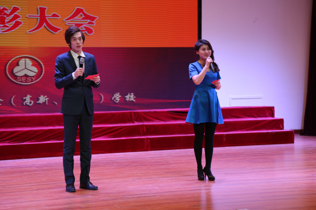 中学部马天放老师、小学部吕建老师主持大会