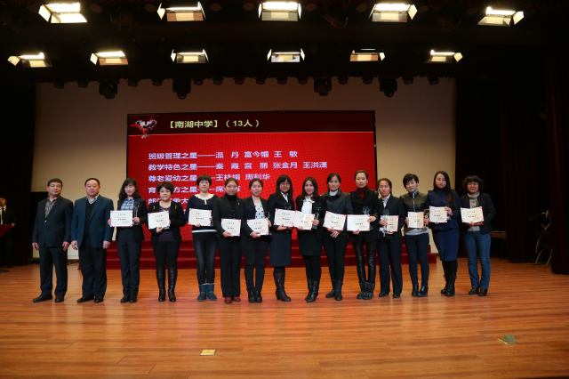 王宏杰副校长、张连峰主任为南湖中学部获奖教师颁奖现场掠影