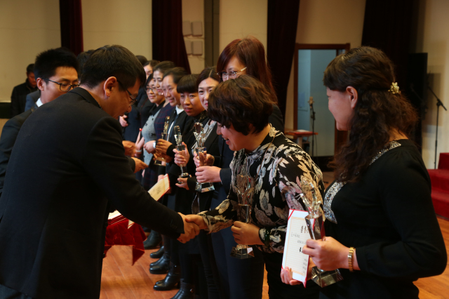 王宏杰副校长、金颖主任为远洋中学部获奖教师颁奖现场掠影