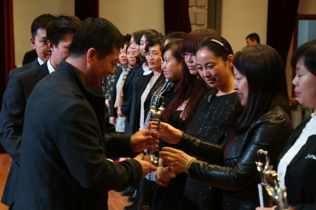 大会首先进行了表彰环节。陈杰书记向大会宣读了学校表彰决定,由王宏杰副校长、遇建勋副校长与学校中、小学、行政负责人共同为部门获奖教师进行了隆重的颁奖。大会共表彰了王平、金颖、石馨、杨桂华4位“巾帼标兵”及杨卫红等78位 “最美女教师”。她们当中,有分分秒秒守候班级、爱岗敬业、富有干劲、管理出色的年级、班级管理者;有孜孜以求善于创新、乐于钻研、课堂高效、成绩优异的学科教师;有积极进取、业务精湛、热情服务、言行规范、心态阳光的部门形象代表;有赡养老人、相夫教子、仁孝勤劳的家庭顶梁柱。她们是倍受学生爱戴、深为同事信赖、受到家长及社会好评的班级管理之星、教学特色之星、尊老爱幼之星、育子有方之星、学校服务之星。