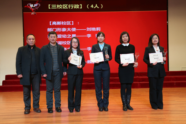 遇建勋副校长、周彬绪主任与行政获奖教师合影留念