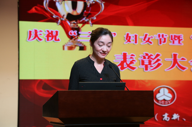 随后,小学部“部门形象大使”杨帆老师、中学部“服务之星”杨春霞老师作为获奖教师代表先后向大会做了《丽人知性,优雅心生》与《专业之美·和谐之美·成长之美·责任之美》的主题讲话。使大家在这个美丽的节日里深深地体悟和欣赏到来自个人和集体的多样的美丽!内心涌动着感恩、进取、奉献、快乐、幸福……,学校、老师、学生、家庭乃至民族共同成长的故事在她们温婉的讲述中铺展开深长的美丽!