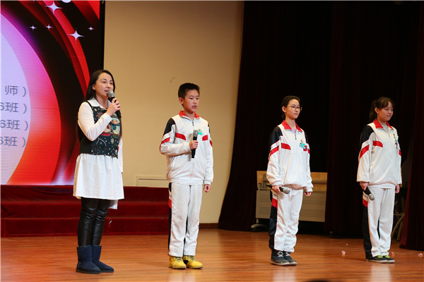开学典礼共分为“新学期,我要……”、“表彰先进”、“校长寄语”、三个部分,由李丽莉老师及鲍俊达、孙铭遥、李婧源、樊弋宁四位同学联合主持。