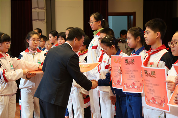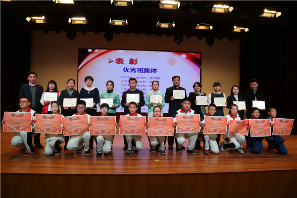 南湖中学教导处张连峰主任和高新征主任,公布了假期社团活动十佳班级与优秀社团、优秀班集体。陈杰校长、王宏杰副校长、遇建勋副校长为获奖社团、班集体颁发荣誉证书。