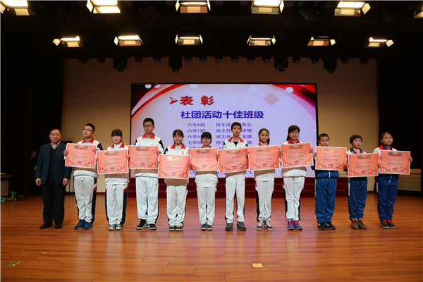 王宏杰副校长为"社团活动十佳班级"颁奖