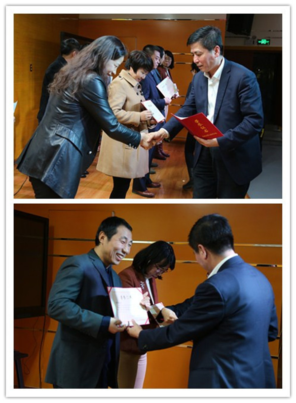 张连峰主任、孙爱华副主任、于泽副主任为2015-2016学年上学期教学优胜个人颁奖