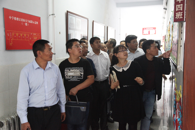 首先校长们在中学部各位主任的陪同下参观了中学楼的走廊和班级文化,各楼层的主题文化宣传是我校中学部教育教学活动的缩影;墙壁上孩子们亲自绘制的卡片印证着新学期的努力奋进;教室内一个个富有创意的文化表达诠释着每位班主任的教育理解,每一位参观的校长都为之所动,时常会驻足观看、拍照。