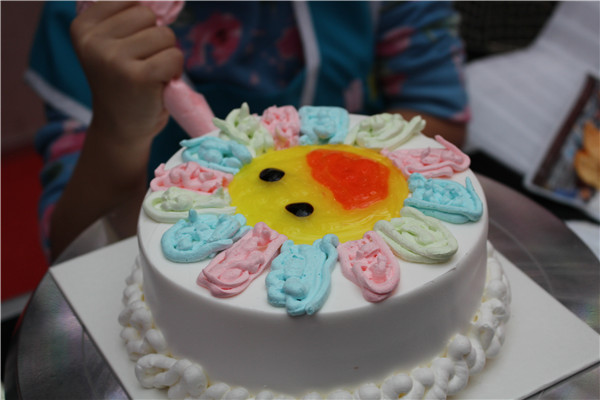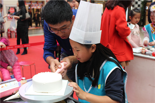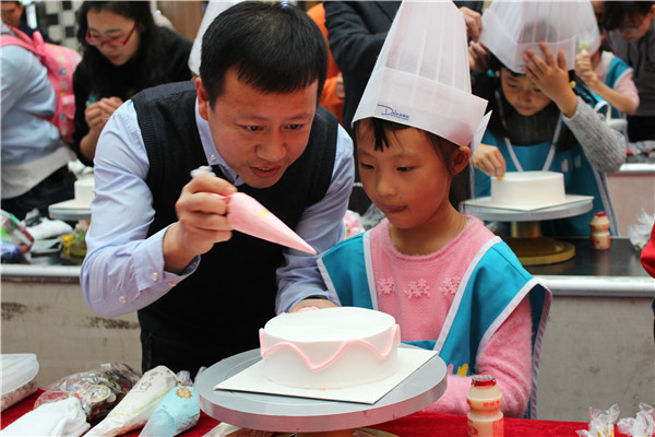 爸爸为我们的蛋糕添加色彩