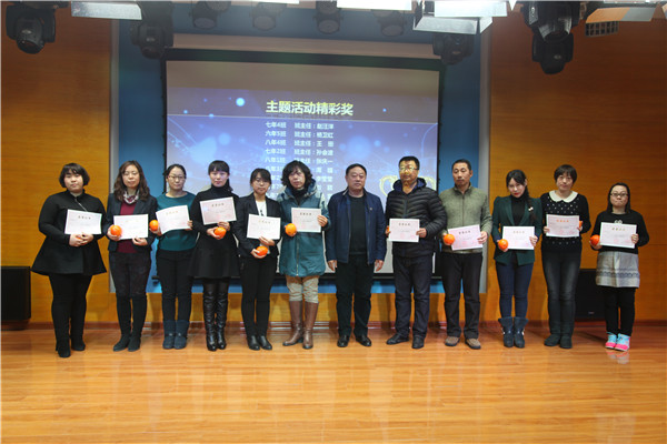 主题活动精彩奖获得班级班主任与校党委王宏杰书记合影留念