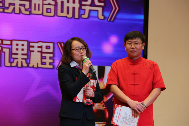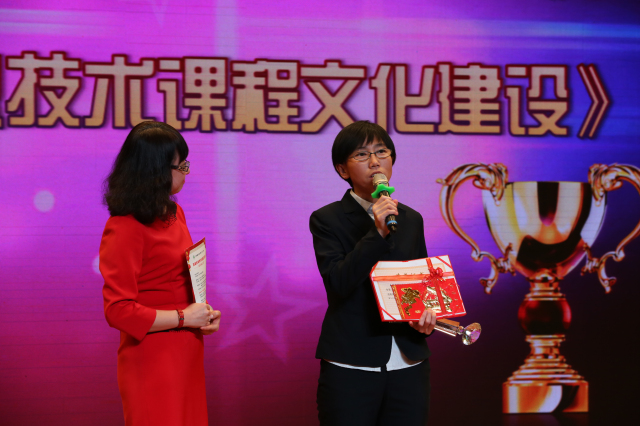 获奖代表王欣老师上台领奖并发表感言