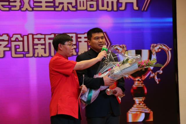 获奖代表刘存宝老师上台领奖并发表感言
