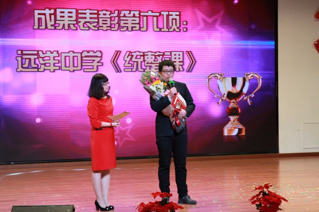 大会重点表彰了南湖小学《教学研课活动》、高新小学《营造完美教室的策略研究》 、高新小学《多元科学创新课程》、远洋小学《基于培养学生核心素养的校本课程初探》、南湖中学《化学社团实践课程》、高新中学《青春期主题班会设计》、高新中学《信息技术课程文化建设》、远洋中学《统整课》共计8个创新成果项目。通过每一段微视频的引入,让我们立体地了解了我们的伙伴,正在以鲜活多样的教育形式让正确的教育观浸润学生的心田,引领学生健康成长;我们的伙伴,正在与时俱进、努力学习,以领先的教育理念和扎实教学能力成为学生信赖、喜爱和尊敬的教师;我们的伙伴,正在积极接纳改革、拥抱变化,自我激励、资源共享,以更包容和互通的团队战斗力不断进步。石馨副校长、孙成群副校长为获奖部门及代表颁奖,每一位领奖教师都发表了自己的获奖感言,整个表彰现场庄重和喜悦,熠熠生辉。