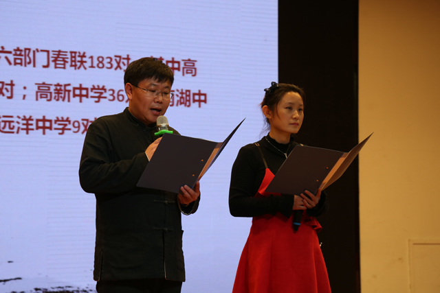 邱艳宝、沈娜二位老师应邀主持学校春联征集评选表奖环节