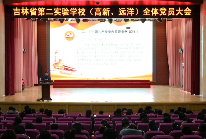 2017年2月23日,按照教育厅党组要求,在校党委的统一部署下,我校全体党员同志齐聚高新中学大报告厅,召开了题为“学习十八届六中全会精神,做合格党员教师”的党员大会暨新学期第一次党课专题培训会。