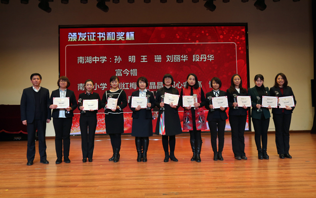 陈杰校长为南湖中小学获奖女教师颁奖