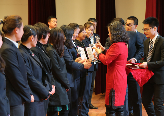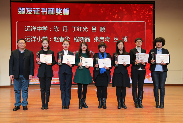 王洪杰书记为远洋中小学获奖女教师颁奖