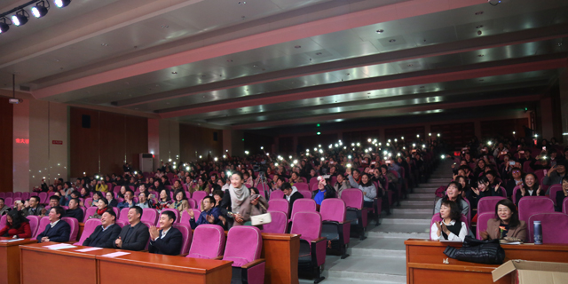 全体与会人员共同欣赏学校女教工视频展示《最美瞬间》