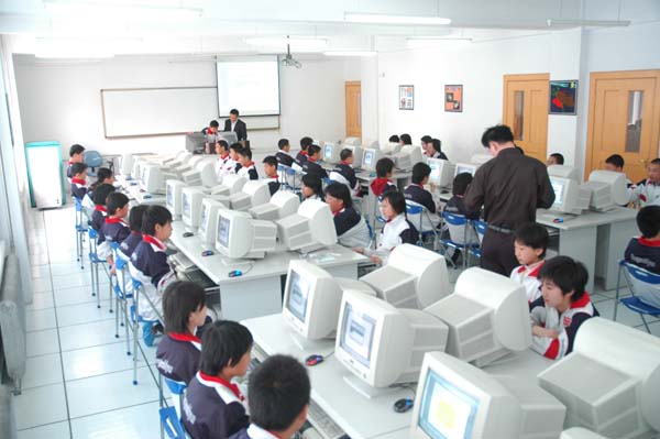 为了全面提高我校信息技术教学水平和教研能力,促进青年教师快速成长,我们开展了一次信息技术教研活动,为了更好的实现活动宗旨,我们特别邀请了吉林省教育学院综合部主任:刘晓峰、李献业,长春市教育教学研究室:尚玉环、吴龙山。同时,杨军校长、黄宝国校长和小学部校长助理王萍以及中学教科研陈晓冬主任也参加了这次教研活动。
