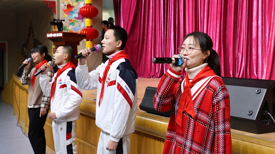 会前,远洋中学年级组长马天放,远洋中学中队辅导员宁佩彤,高新小学中队辅导员王博、黄新媛,音乐教师邹彩霞、刘畅和少先队员代表同歌共舞,尽情抒发,自在表达,展示师生同行,情谊温暖;少先队员演奏小提琴、快板打响太平歌词等展现了省二实验少年的情智与风采。