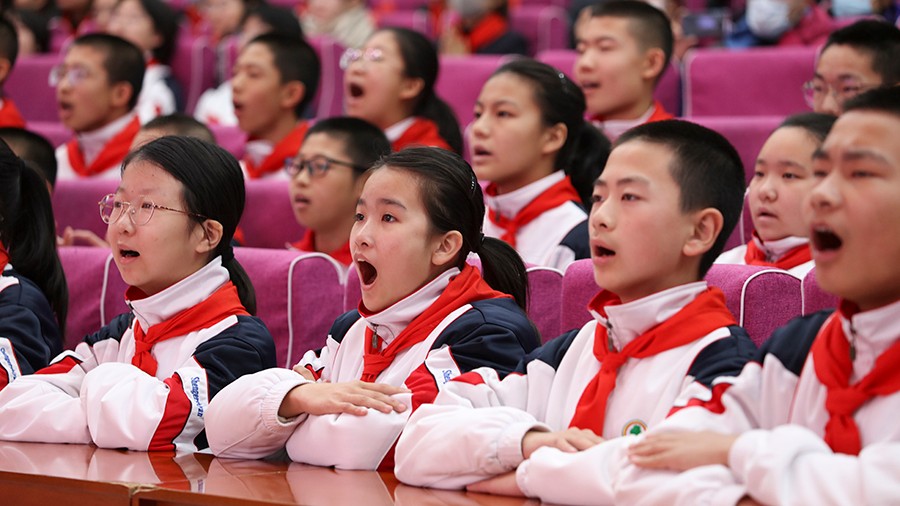 范仲淹的千古名篇《岳阳楼记》表达了忧国忧民的担当情怀,由央视国风综艺节选并谱曲;电视剧《理想照耀中国》的主题曲《理想》赞颂了开拓者孤身跋涉,奋力求索的身影。高新中学的少先队员很喜欢这两首歌。