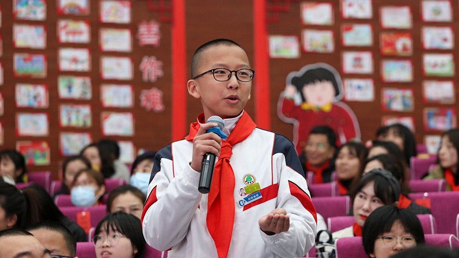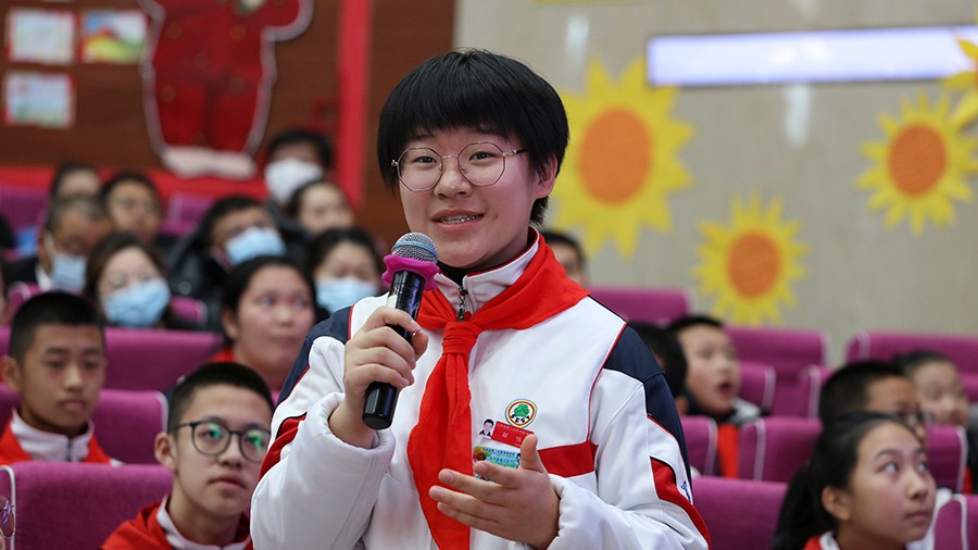 “我们亲手创建的未来一定是中华民族的伟大复兴”“我创建的未来,人人有个性,但是社会环境是和谐美好的”“青春的沙场是在小小的课堂里我们要认真听讲,在国家的赛道中我们要振兴中华”,少先队员的积极表达,让老师和家长感觉到蓬勃的青春力量,为少先队员的视野开阔、胸怀宽广感到骄傲。