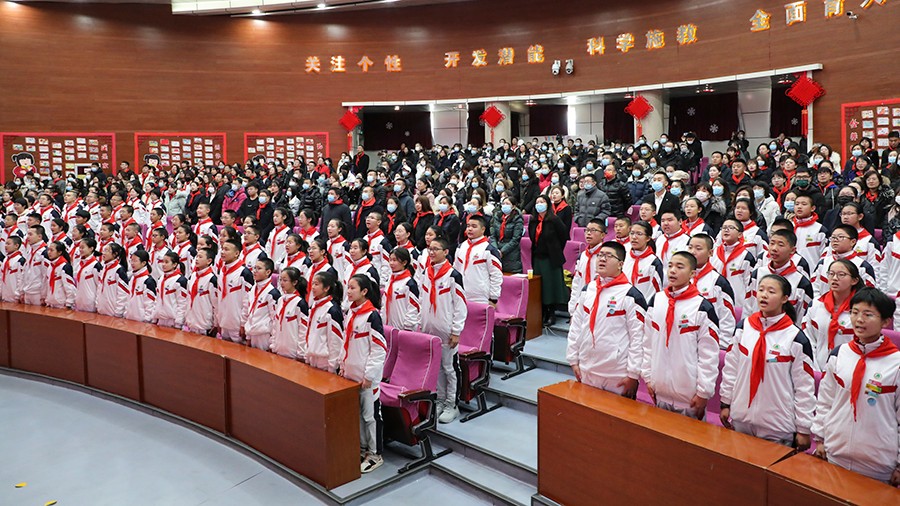 雪后的清晨格外舒朗,少先队员用真诚的笑容、一声声温馨提示给这个寒冷早晨带来温暖,他们热情引领各位领导、老师和家长代表们进入会场。