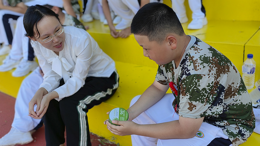 国防体验,收获良多,教师陪伴,引领进步。南湖中学六(2)年级组长于春婷老师作为教师代表,表达对同学们的敬佩:军令营生活即将结束,老师们的眼前依然满是同学们坚毅挺拔的模样:脖子晒红了,脸庞晒黑了,但脊背更加挺拔,目光愈发坚定;作训强度大了,训练时间长了,但内心更加坚强,英雄气更加硬朗;同学们以赢得标兵团队的奖杯为光荣,以为集体踏出了统一的步伐为骄傲。于老师还郑重公布了国防教育军令营作训标兵,讲述同学们的榜样故事,敬畏少年成长。