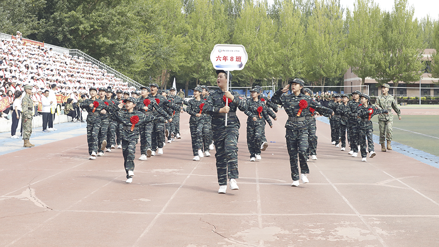 壮少年体魄,强中华脊梁,沙场秋点兵。小勇士们军姿飒爽,目光坚定,等待陈杰校长检阅。“同学们好!”“校长好!”“同学们辛苦了!”“为校争光!”誓言铮铮回荡云霄,坚毅目光面貌昂扬!