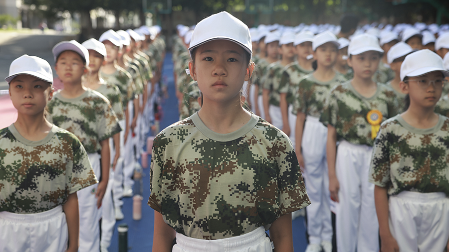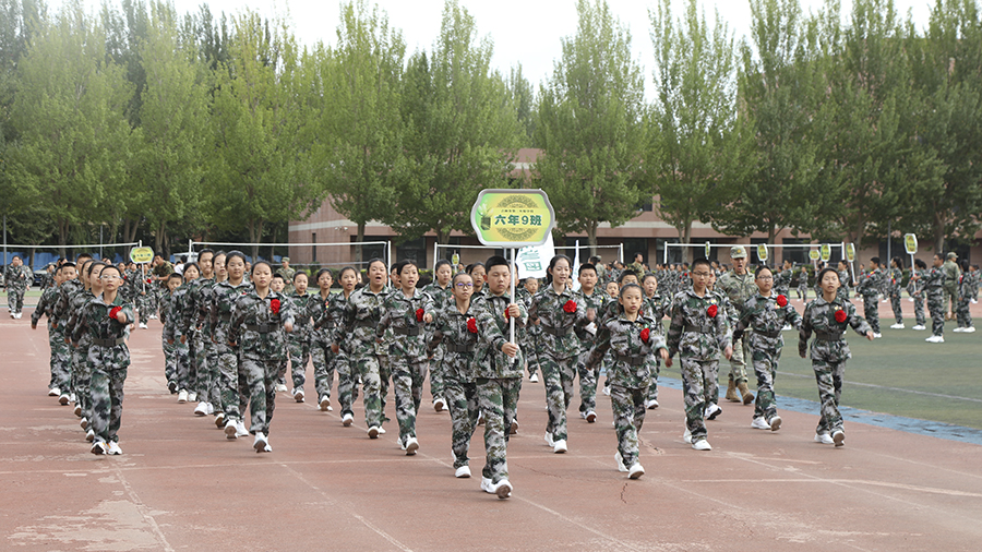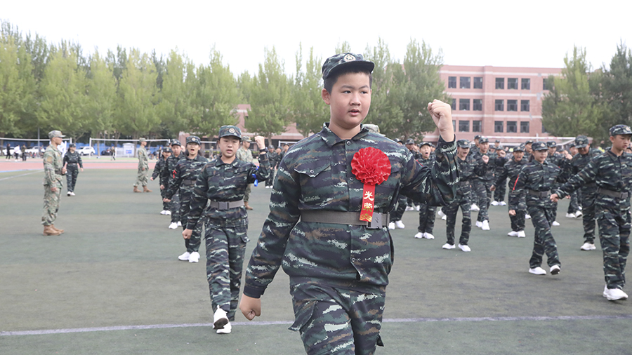 铿锵的步伐踏出团结奋进的精神,响亮的口号彰显少年勇士的风采。整齐的排面,是从一个个个体凝聚为齐心协力的团队的体现;踏地有声的正步,讲述着五天烈日下顽强作训的故事。少年勇士们从军令营出发,步伐铿锵地迈进初中生活!