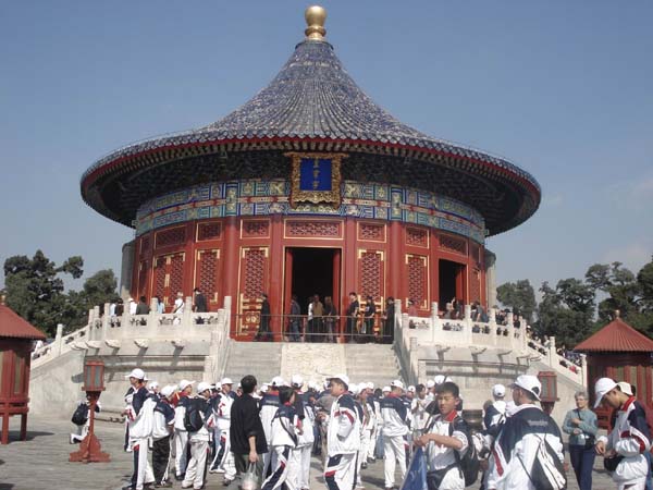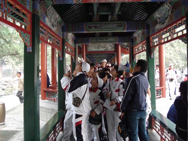 北京金秋之旅,不仅是学习之旅,更是收获之旅。在13个小时的劳顿之后,我们迎来了北京清晨第一缕阳光。虽然眼角还有些许疲惫,但我们对未来五天的金秋之旅充满了期待。我们第一站去的是建于1958年的北京自然博物馆,这里的标本与化石向我们展示了生命的进化历程,图文并茂的资料使学生对生命科学充满了兴趣。第二站来到了天坛,回音壁的独特设计让我们感受到了古代劳动人民的聪明才智,有无梁殿之称的祁年殿,更让学生感慨给中华民族给世界建筑史留下的奇迹。游览景泰蓝的工厂,让学生亲眼目睹景泰蓝的生产流程,精湛的民族手工艺水平令学生叹为观止。在中国科技馆师生共同探索科学的奥秘,科技的飞速发展学生们真切的体会到“科技是第一生产力”!