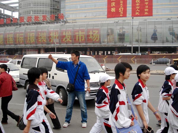 王府井之行便是一段寻找快乐的旅途。导游的一声“解散”,学生们便如烟花般四下散开。在某处相遇,先故作惊讶状,再道一声好,戏称“有缘”,之后再各自散去,寻找属于自己的快乐之行。殊途同归后,自是收获甚多:遍尝各地之吃,以饱腹欲,购心爱之物,以尽孝道;感受古都现代文明,增长见识。