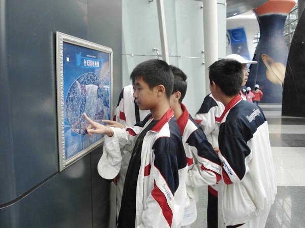 在活动中,省二学生也表现出“在知识中寻找快乐的能力”。在天文馆,参观这揭示宇宙无限奥秘的世界,孩子们都是不由自主地移动脚步,目不转睛地观察天体运行变化。有的老师与学生一起观看“弦月”、“上弦月”、“满月”的形成过程,让这本来枯燥的天文观象变的生动起来。有的同学豁然开朗,说:“原来这就是月有阴晴圆缺呀!”此中含义耐人寻味,这业证明,其实只要肯寻找和发现,那么快乐可以无处不在。
