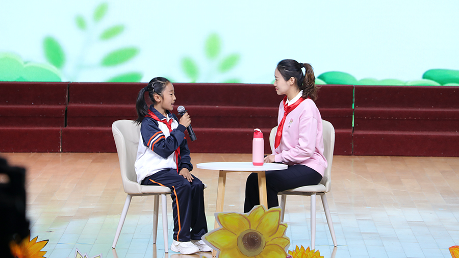 “诚实、勇敢、活泼、团结”的少先队作风,是少先队员的成长方向与笃定力量。“守真——师生对话”环节,还原了辅导员和少先队员对话的日常,引导队员保有心底的真,师生一起守住教育的真。远洋小学大队辅导员宗明铭老师和大队宣传委员胡欣熙以《做一颗诚实勇敢的闪闪红星》为题展开对话,以真实的成长小故事分享对“诚实”“勇敢”的理解。南湖小学四(7)中队耿莹老师和闫诗兮同学以《向伙伴学,做活泼团结的少先队员》为题开展对话,表达出“活泼”是朝气蓬勃,是兴趣多、点子多、朋友多、快乐多,“团结”是要看见每个人的优长,让每个人注入集体的力量都有回响。师生对话发生在日常,育人的契机也融在日常的点滴里。