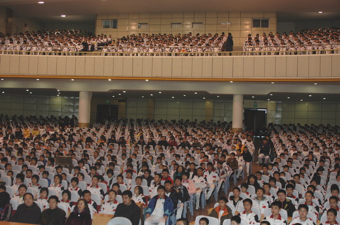 公关学校的杨老师为同学们做“中学生礼仪讲座”
