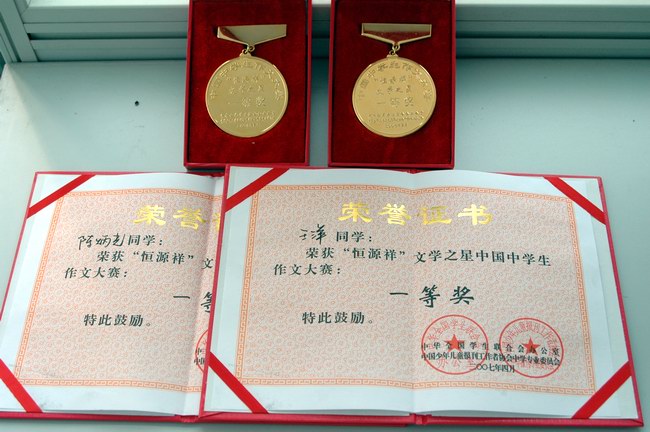 王洋、陈炳光同学荣获“恒源祥文学之星”中国中学生作文大赛一等奖