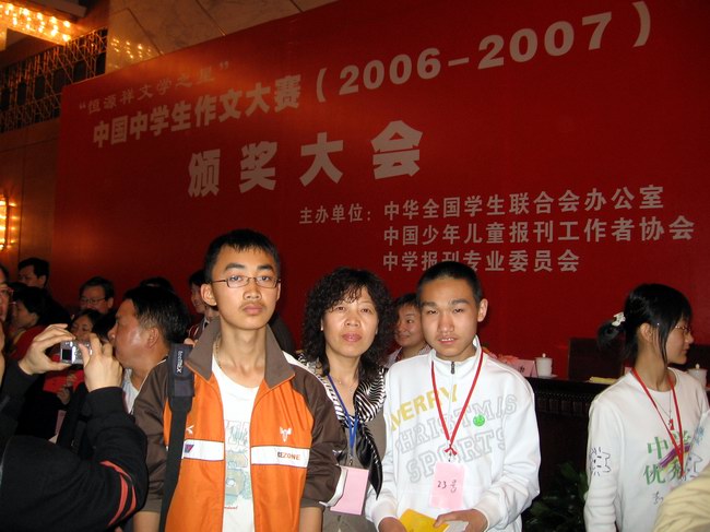 2007年4月20日在人民大会堂举行了2006-2007“恒源祥文学之星”中国中学生作文大赛颁奖仪式。在全国2600多万中学生参赛选手中我校王洋、陈炳立同学荣获一等奖,周馥老师获指导教师优秀奖
