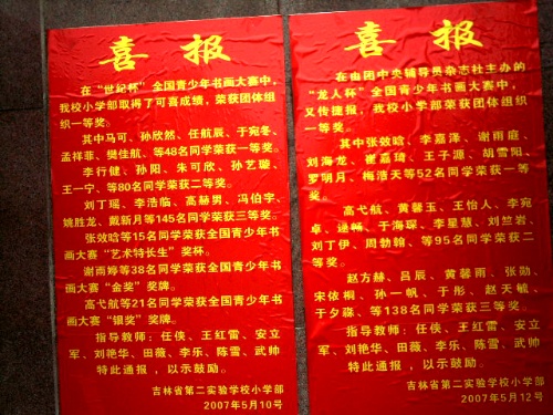 恭喜我校小学部在"世纪杯"全国青少年书画大赛中,取得了可喜成绩,并荣团体组织一等奖.在团中央辅导员杂志社主办的"龙人杯"全国青少年书画大赛中,荣获团体组织一等奖.