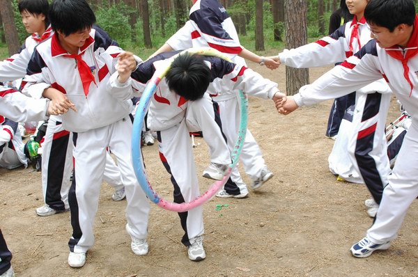 全班师生都参加的游戏——套走呼拉圈