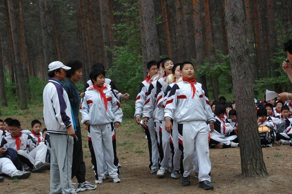 “六、一”儿童节,我校在净月潭为大初一年级学生举行隆重的离队建团活动。在活动中,通过召开主题班会“童年趣事”和“找回童年”的集体游戏活动,让孩子感受到童年生活的美好与快乐;在“告别童年,扬帆起航” 离队建团主题活动当中,通过“向红领巾承诺”仪式、班主任向每个孩子赠送青春贺卡,新团员入团仪式等活动,让孩子感受到自己已由幼稚的童年,步入了绚丽多彩的青春,促进他们心理上的长大。此次活动的地点设在风景怡人、空气清新的净月潭森林浴场,让同学们在这一天尽情享受了大自然的美好风光,享受了集体生活的快乐与合谐。