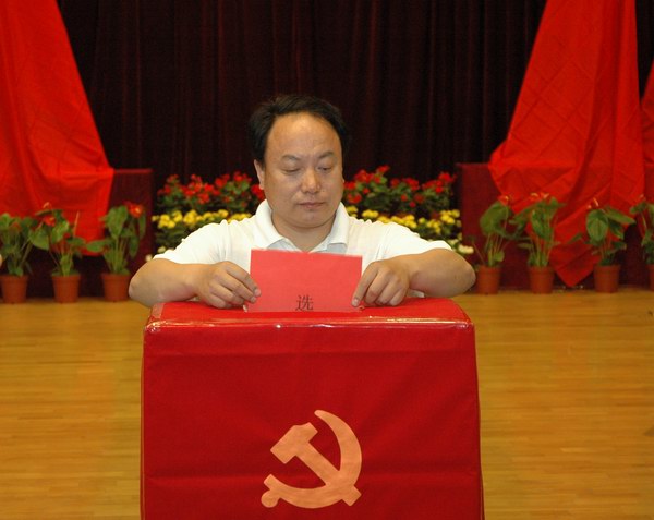 关尚敏书记在党委委员选举大会中投票