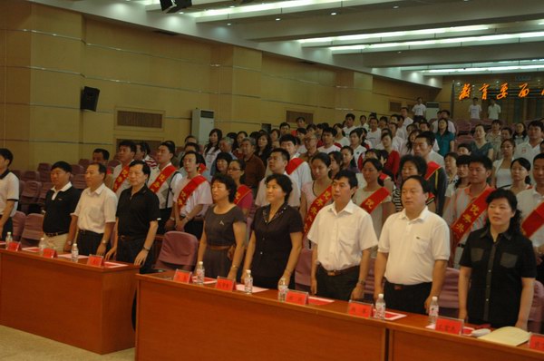 党委成立大会上,与会领导同志共唱国歌